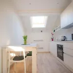 A konyhai felszerelések közé tartozik a mikrohullámú sütő, elektromos vízforraló és hűtő.